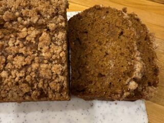 This is the most delicious pumpkin bread! I especially love the streusel on top. It is moist and has great pumpkin flavor and I am excited to make it again!